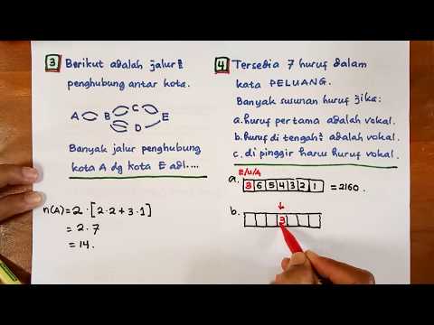 Peluang 1 Contoh Soal KAIDAH PENCACAHAN - Contoh Soal Pencacahan - Untuk mempelajari materi peluang, sangat penting untuk menguasai kaidah pencacahan, permutasi, dan kombinasi terlebih dahulu. Video ini membahas ...