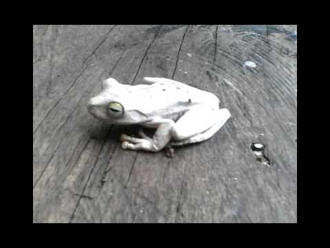 Rana Blanca }}- Hola a todos En este vídeo les muestro una rana durmiendo profundamente en la tabla de un molino. Sus nombres son La rana blanca, rana cantora, rana ...